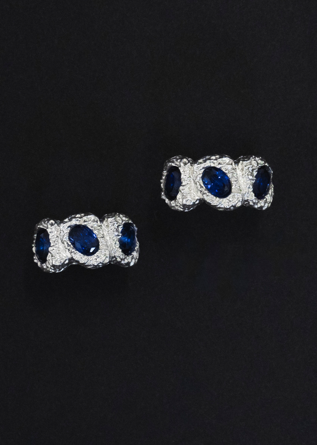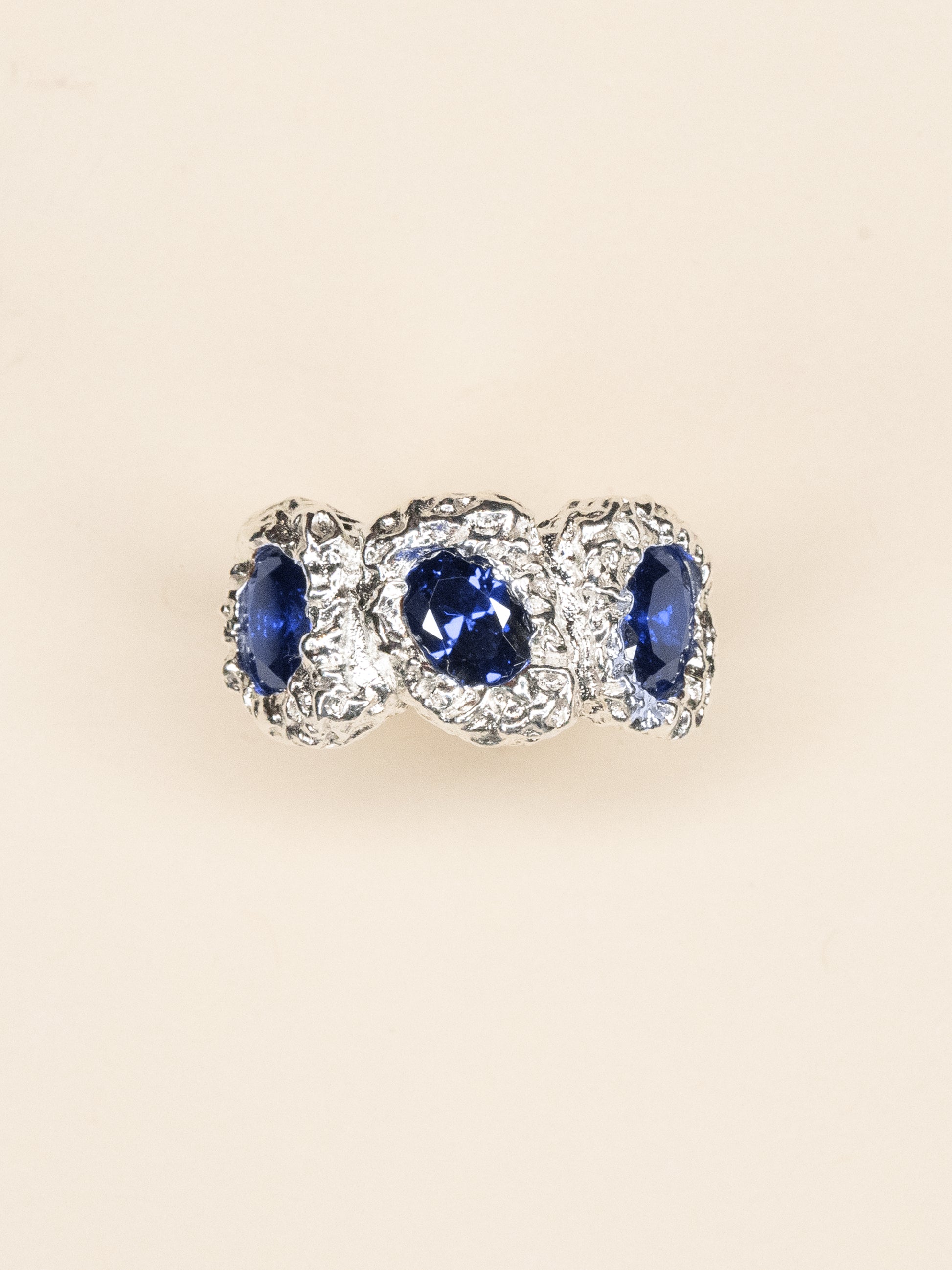 .925 Sterling Silver & three blue high-quality zirconia stones.