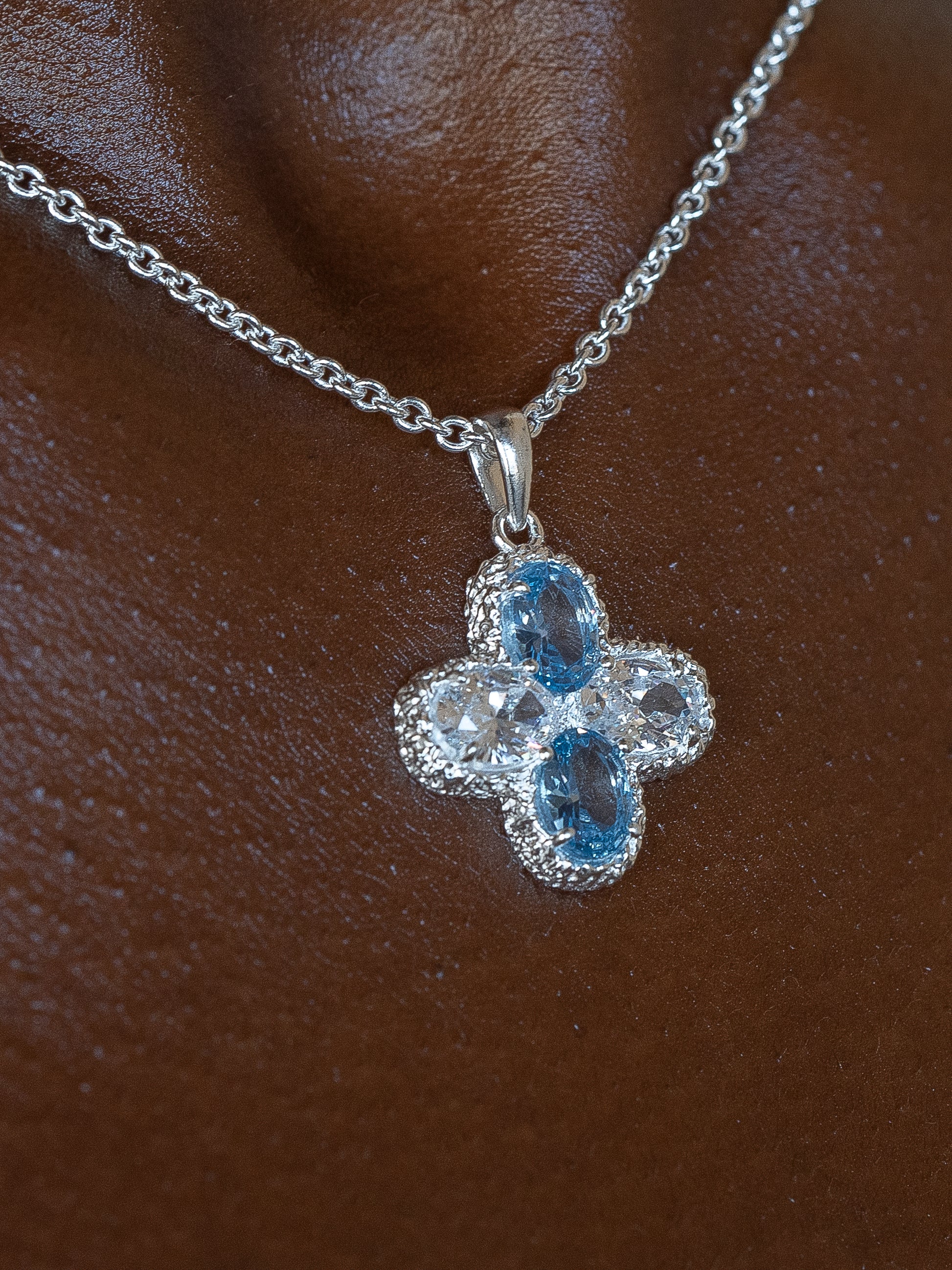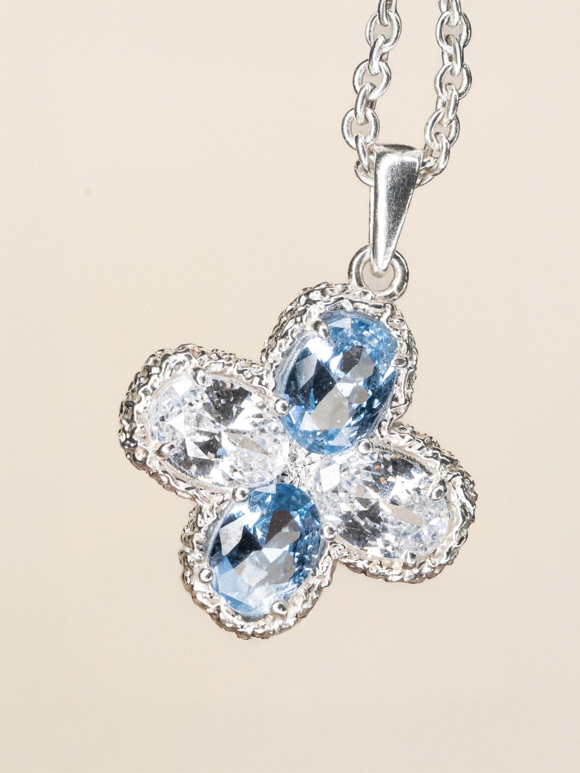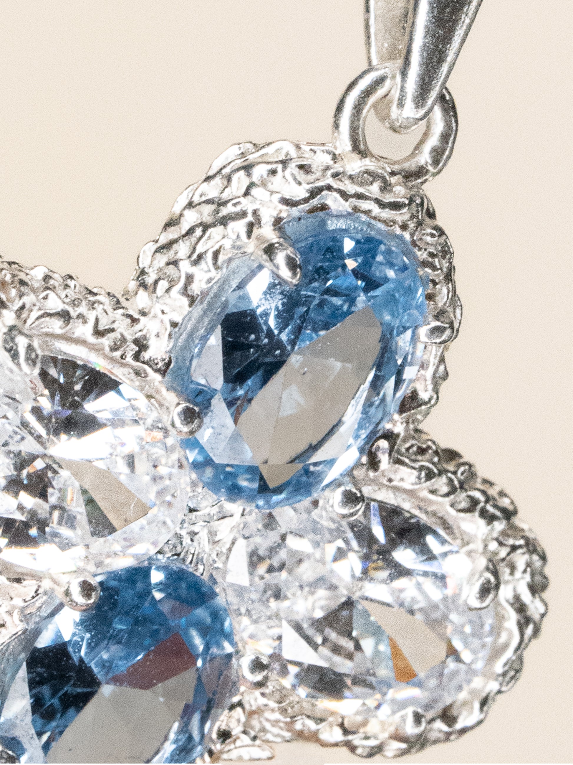 .925 Sterling Silver with high quality zirconia stones in blue & white.