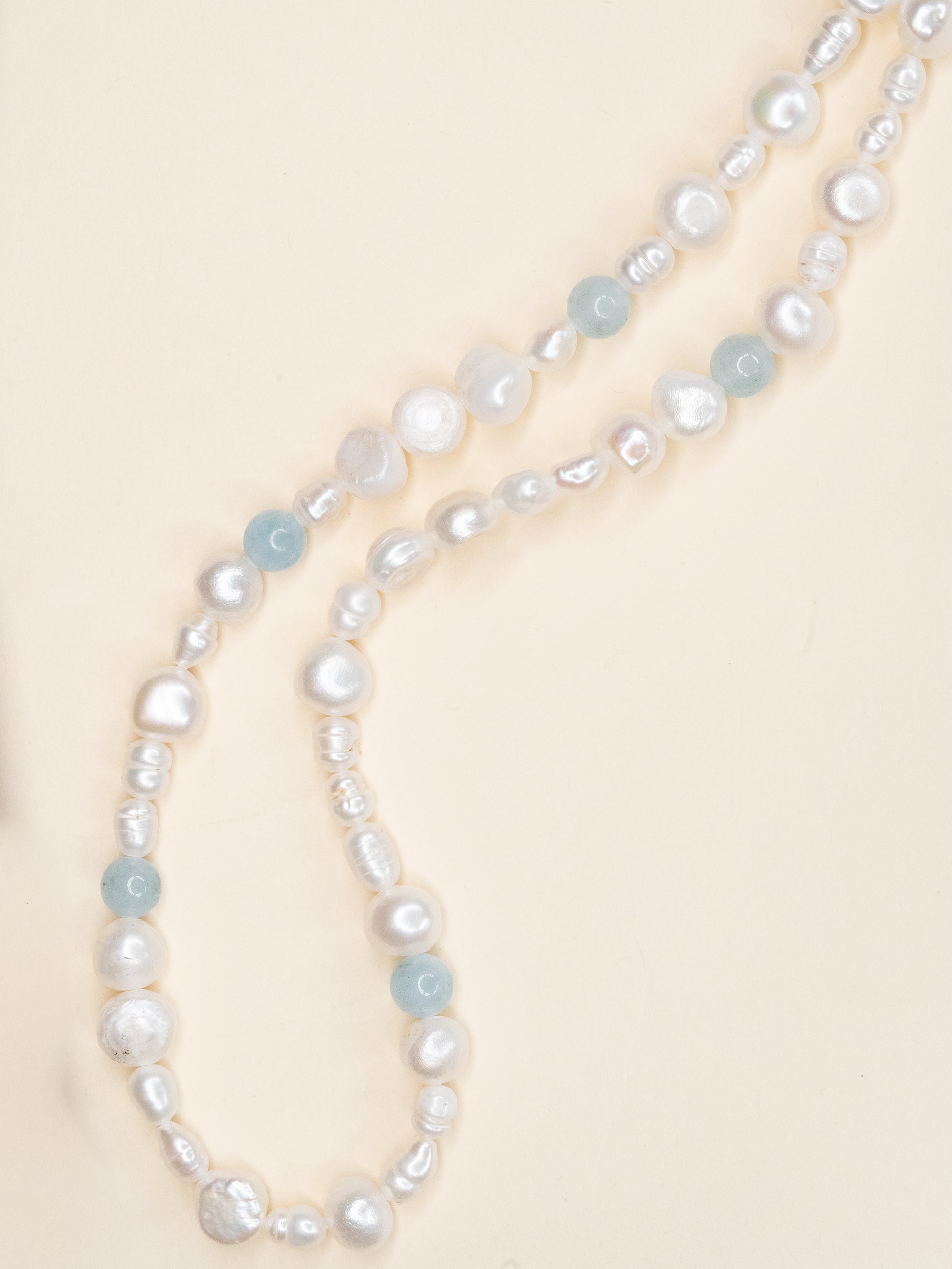 High quality freshwater pearls, blue tourmaline stone with .925 beads and .925 silver closing