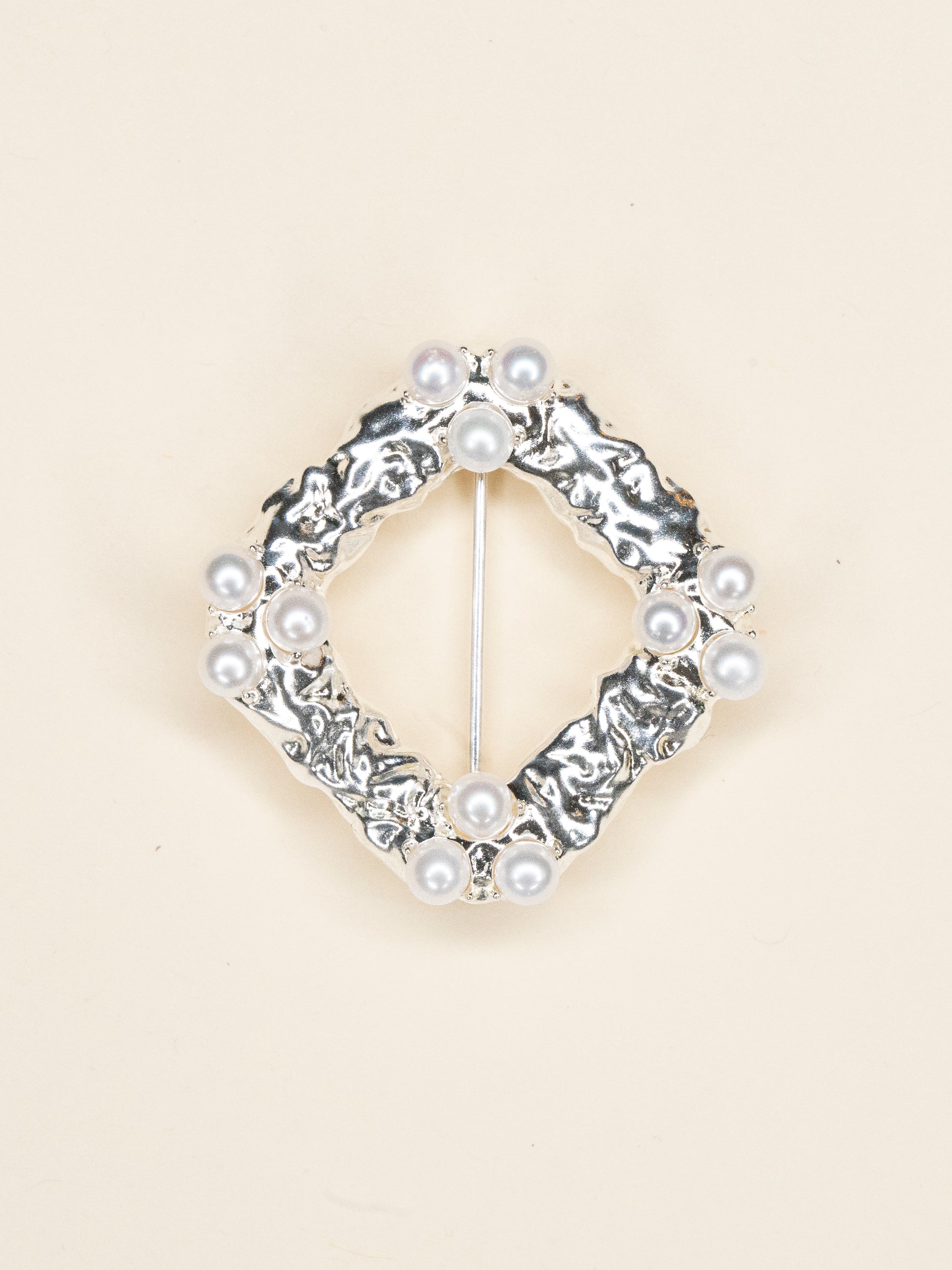 A meeting of contrasts, this brooch pairs the raw, textured surface with the soft luster of pearls, capturing the essence of S/A imperfect beauty.