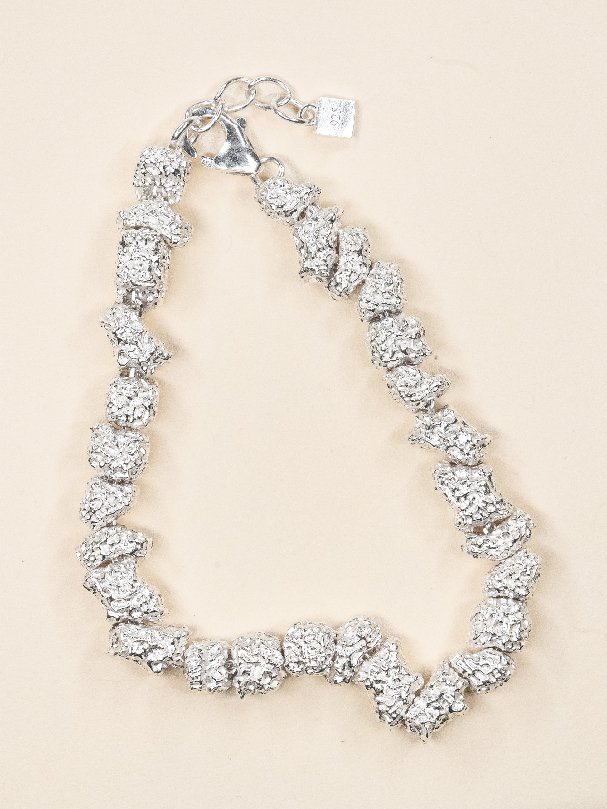 A refined piece that draws inspiration from the timeless elegance of an actual stone. Crafted with detail, this bracelet showcases an array of small, textured nuggets with organic edges. "Jiwe," meaning "stone" in Swahili, encapsulates the essence of nature's sophistication.