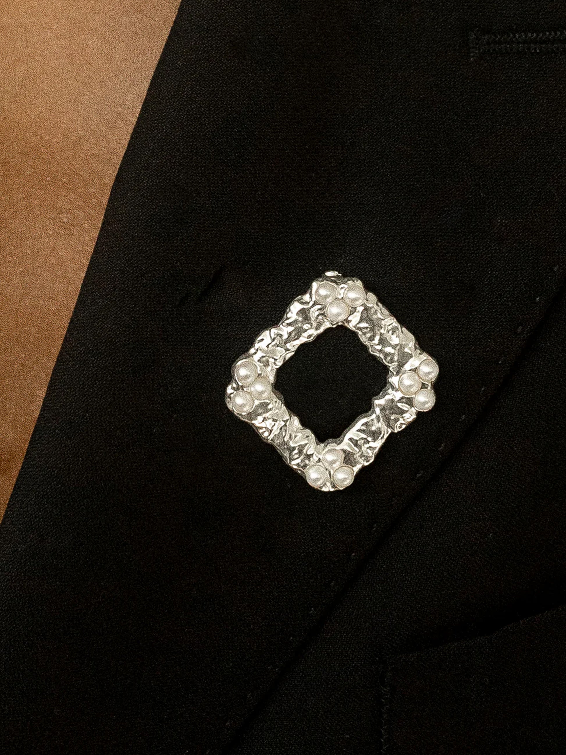 A meeting of contrasts, this brooch pairs the raw, textured surface with the soft luster of pearls, capturing the essence of S/A imperfect beauty.