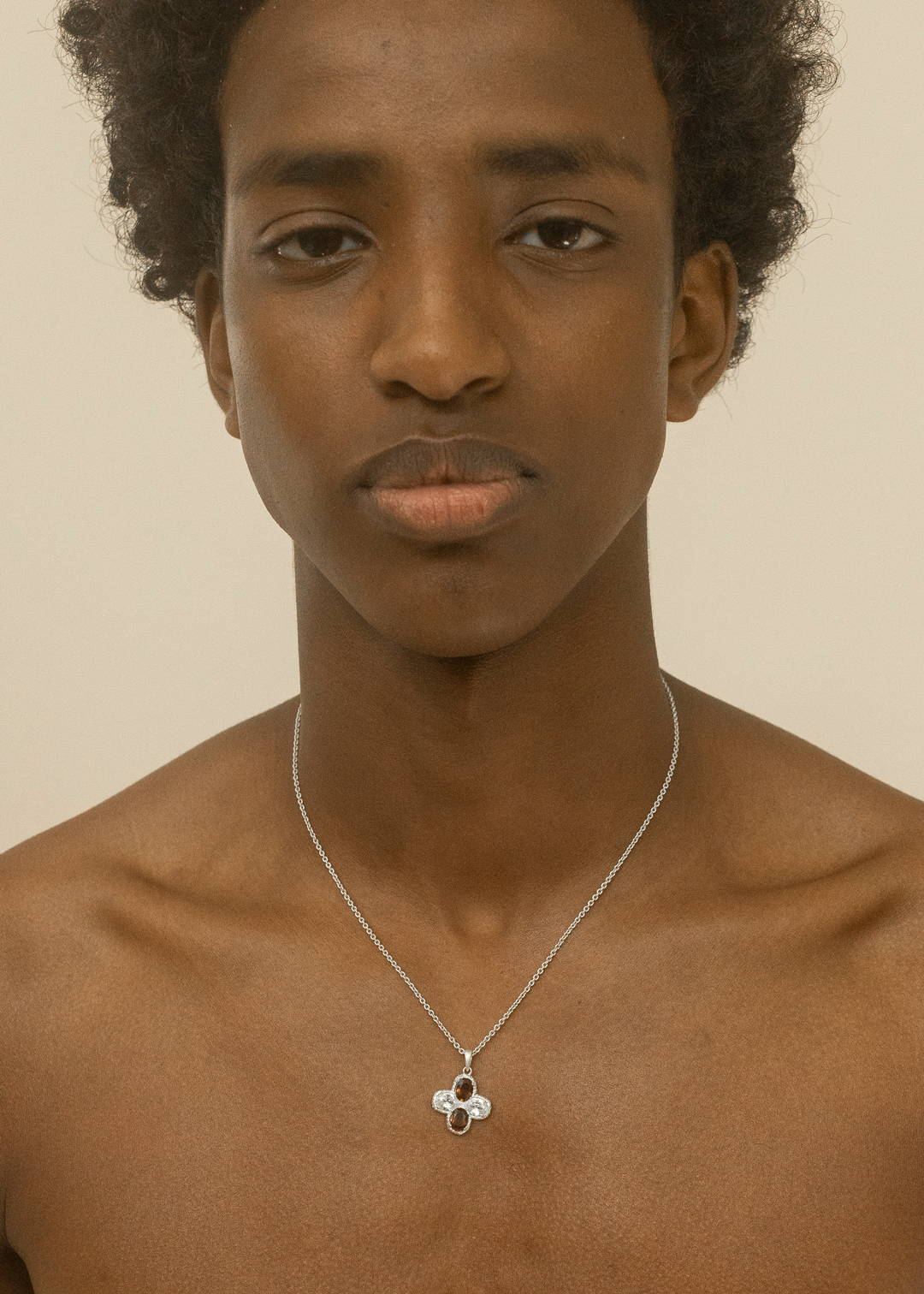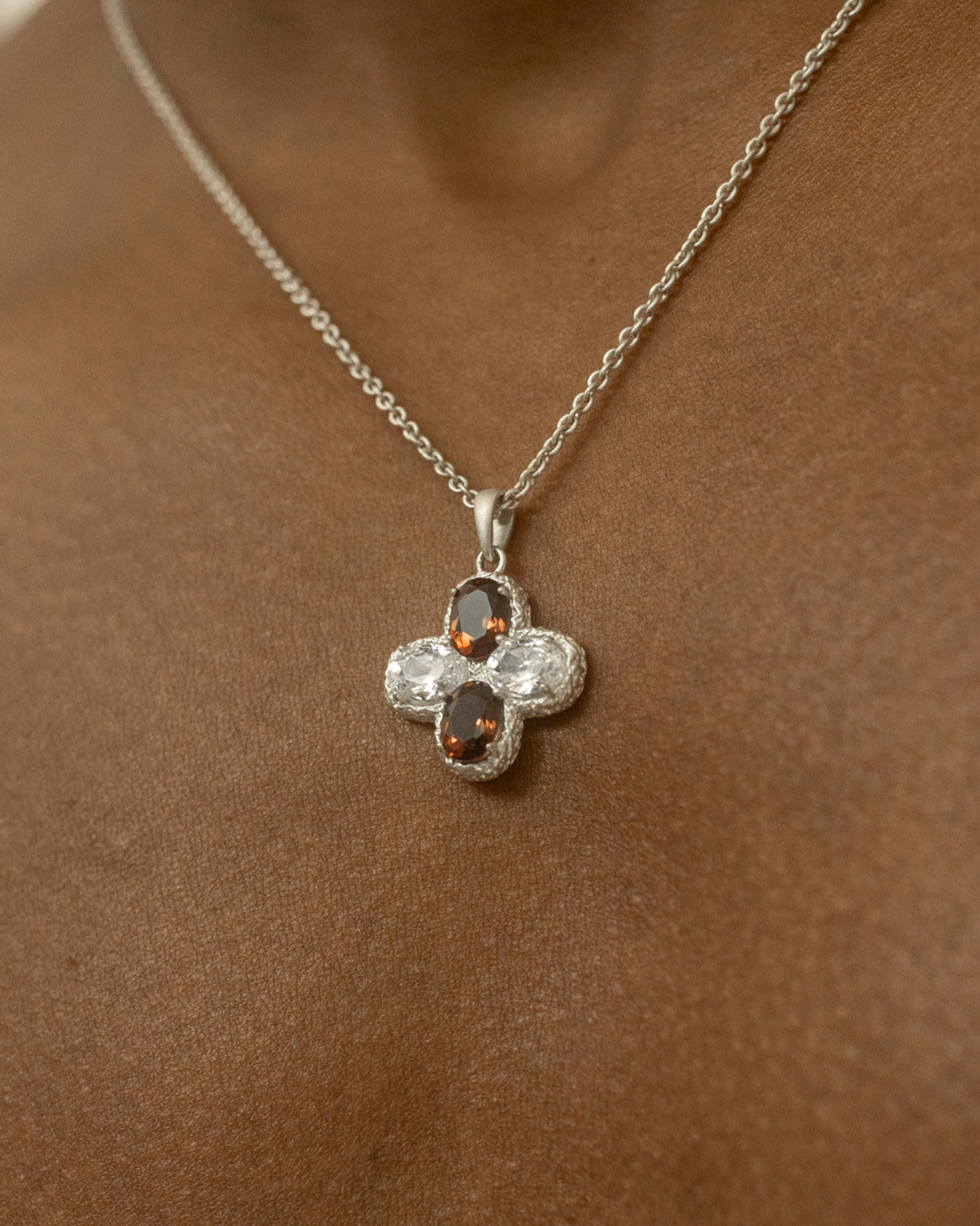 .925 Sterling Silver with high quality zirconia stones in dark brown and white.